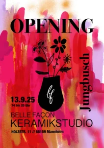 Wir lieben Keramik, Ihr auch? Egal ob Keramik bemalen, töpfern an der Drehscheibe oder mit der Hand am Tisch. Bei uns findet Ihr alles was das Töpferherz begehrt. Ob Workshops, individuelle Events oder freies Arbeiten, Ihr bucht was zu Euch passt und wir geben uns die größte Mühe Euch bei uns eine schöne Zeit zu bereiten. BELLE FAÇON GOES JUNGBUSCH Ab Mitte September könnt Ihr Euch Eure Plätze nicht nur im Atelier in Friedrichsfeld, sondern auch im Studio im schönen Jungbusch buchen.